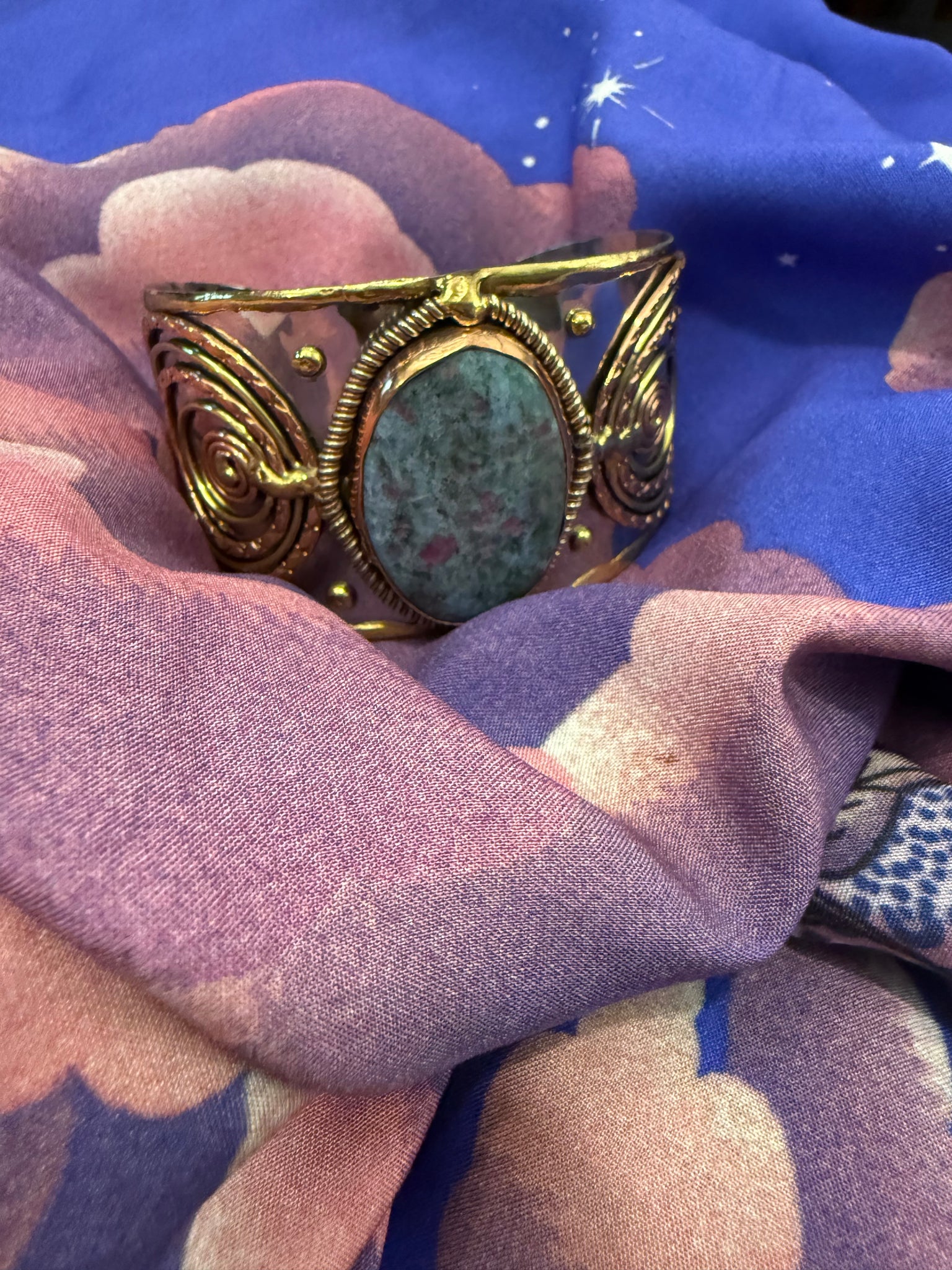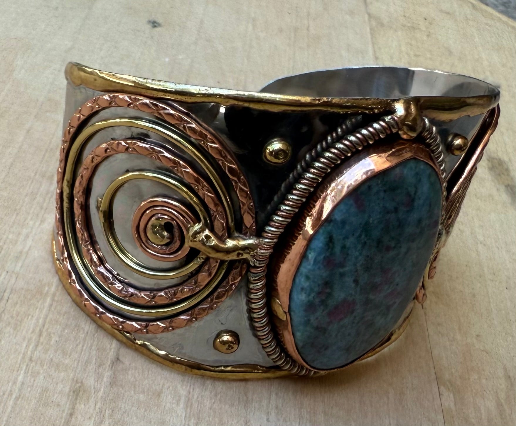 Beautiful mixed metal cuff goes perfectly with any of our silky kimonos, but especially the moon style.