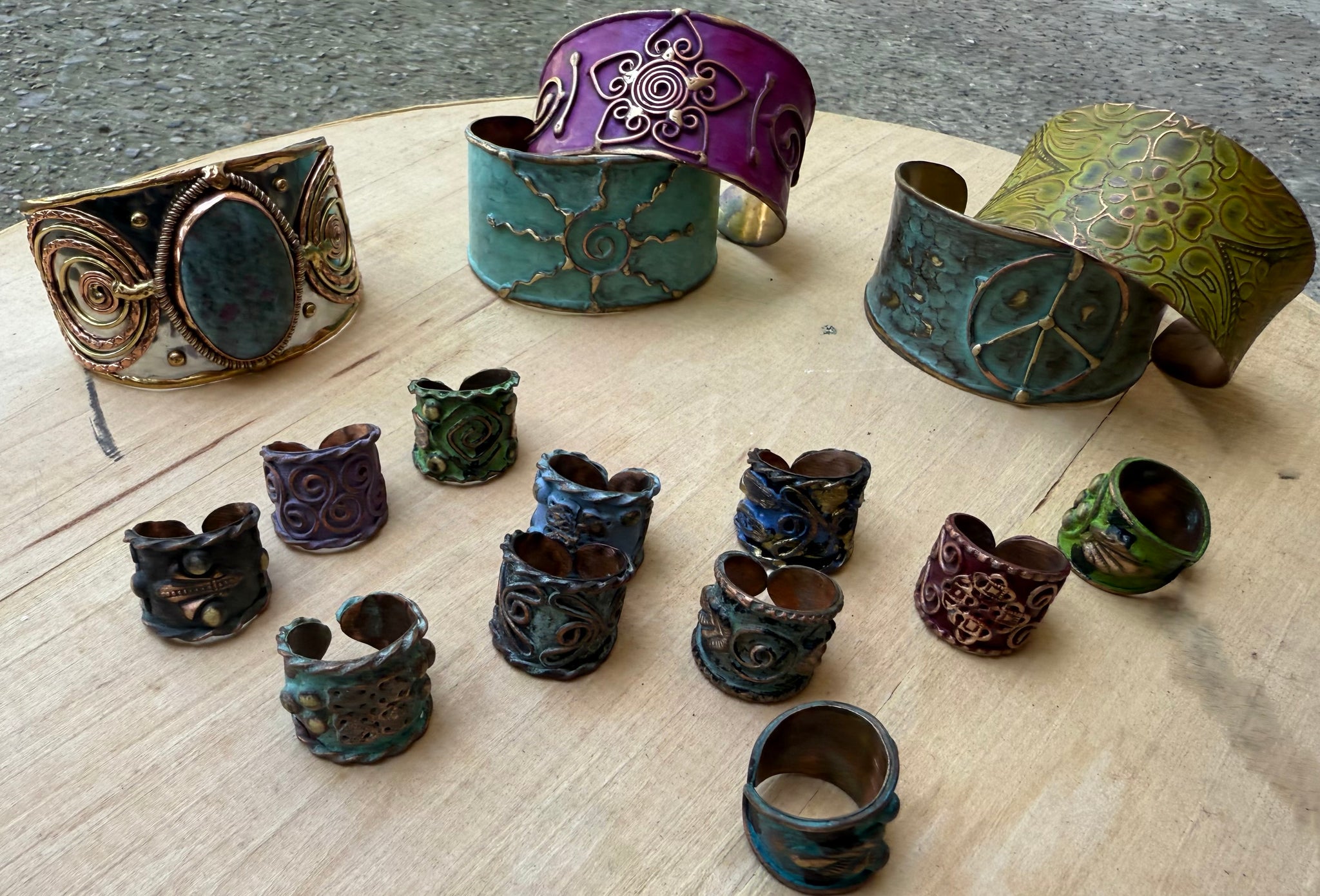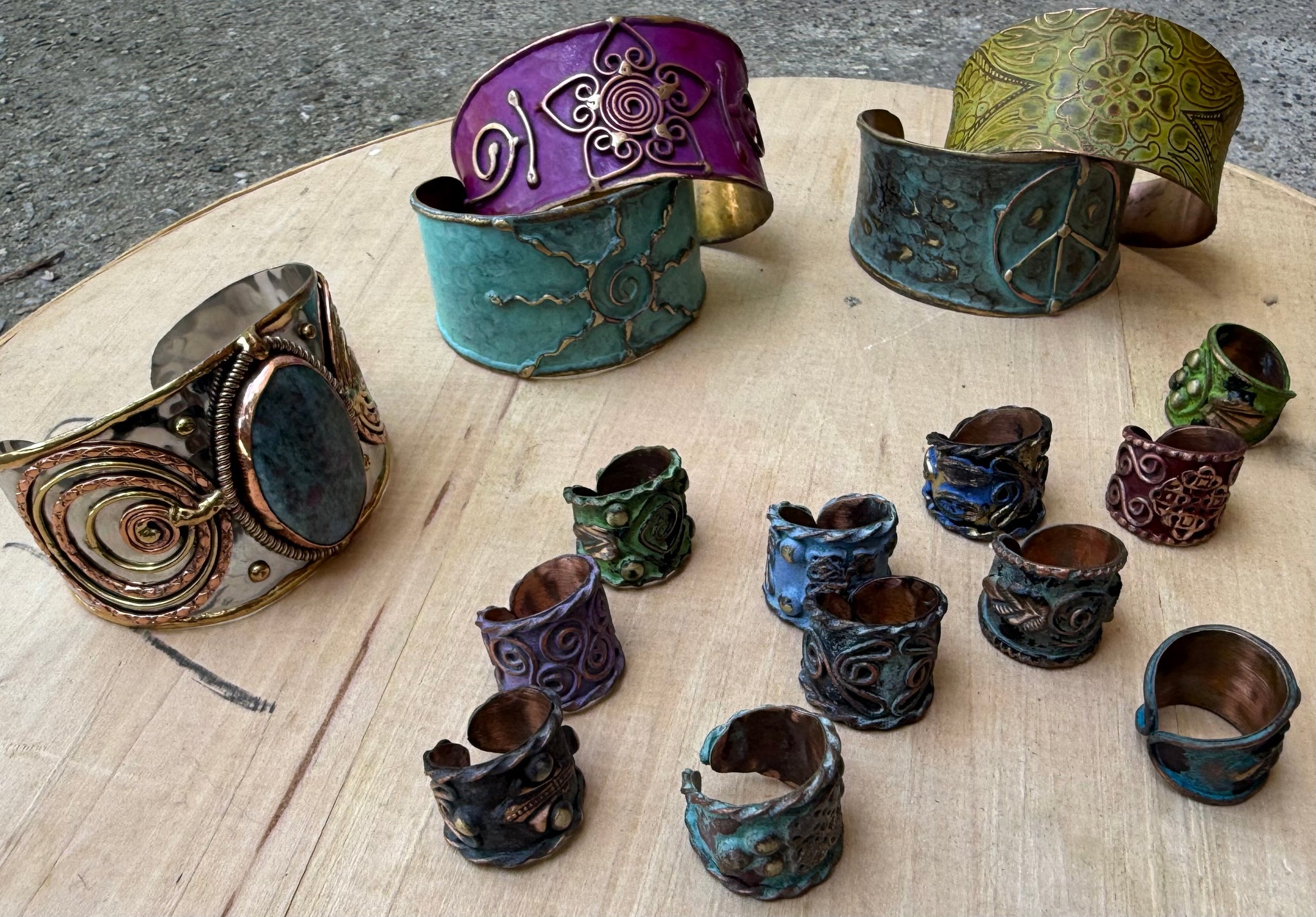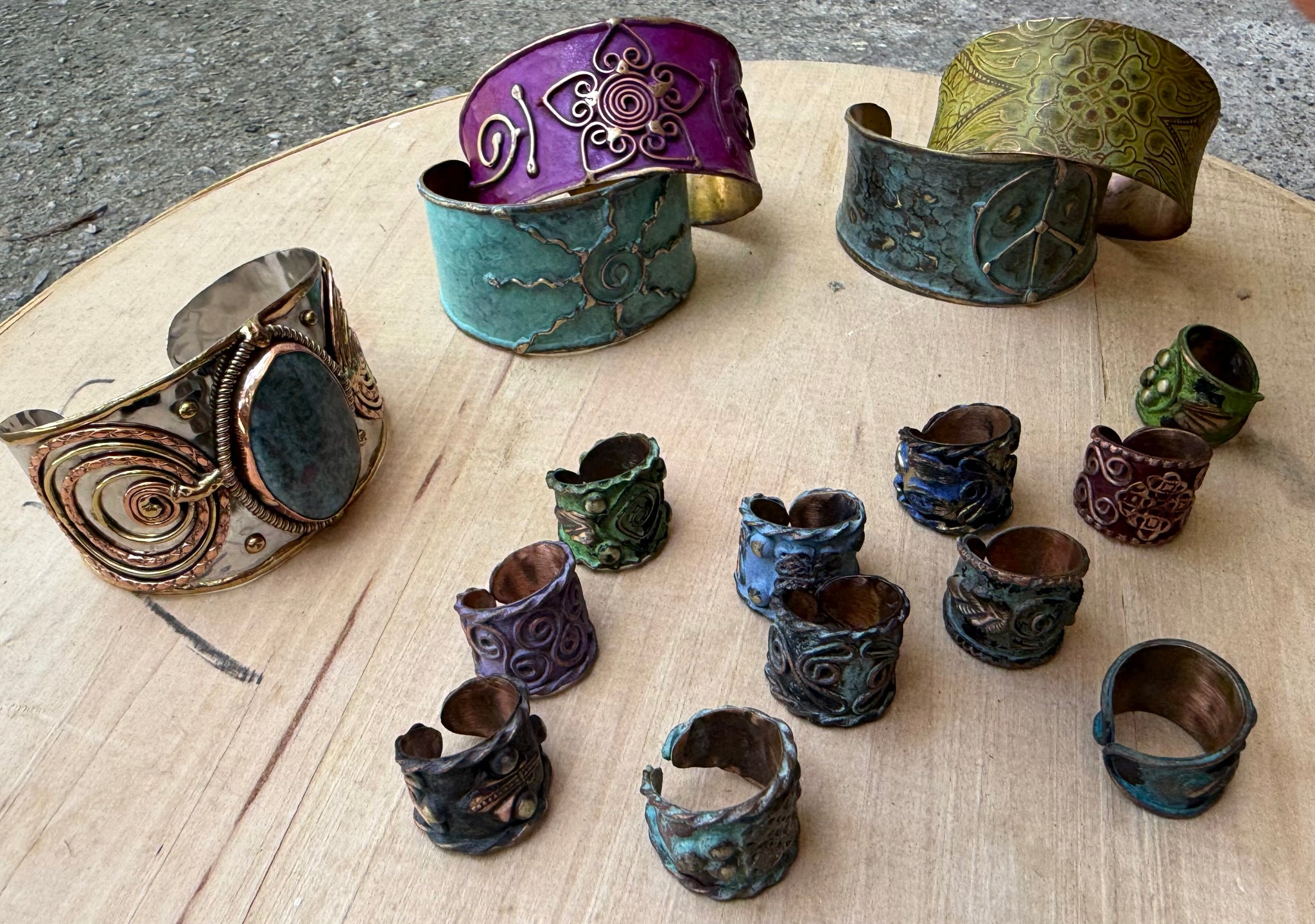 Beautiful adjustable copper rings go perfectly with any of our silky kimonos, but especially the moon style.