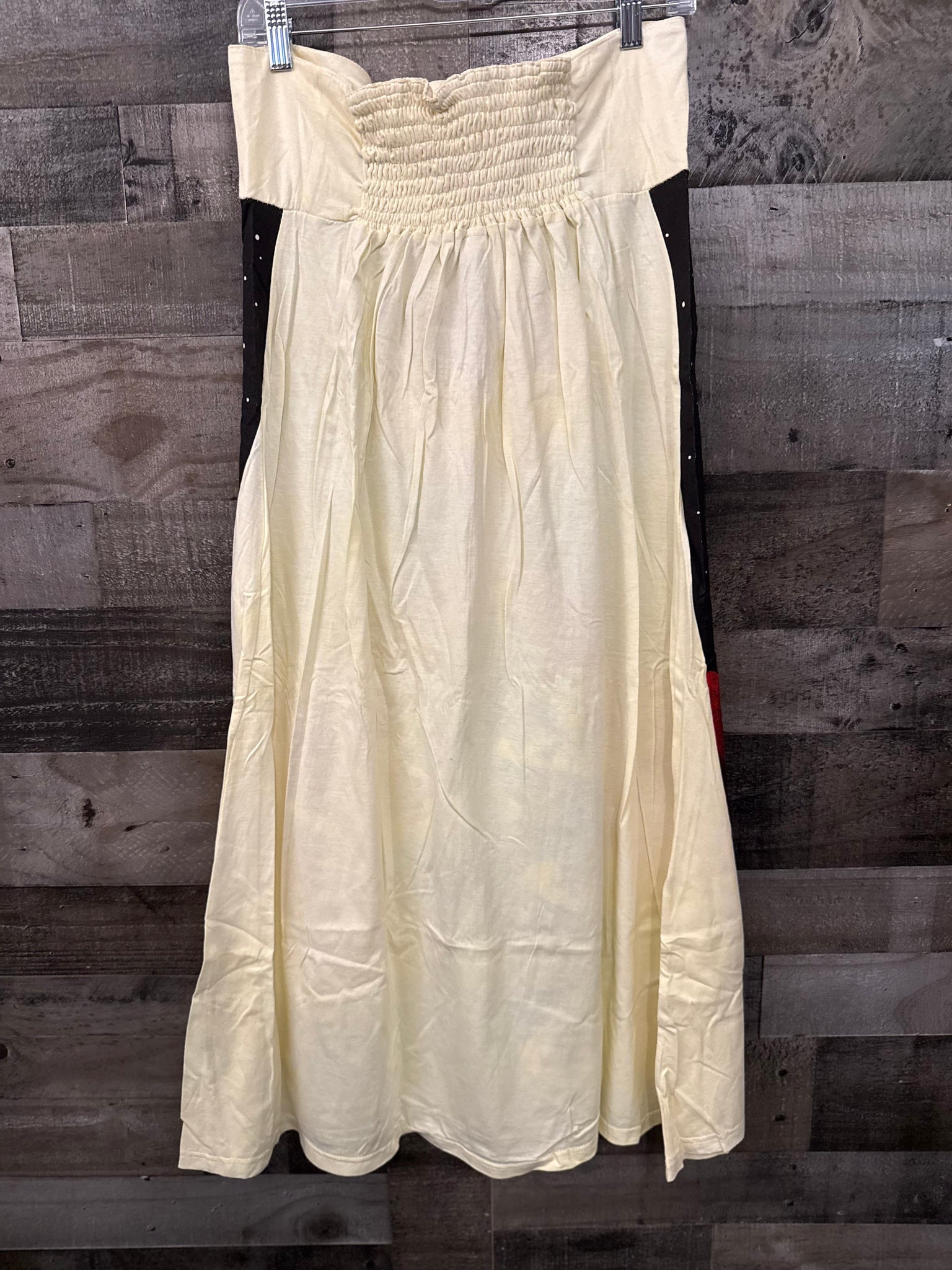 Fun little skirt to slip on and go. This is a great maxi skirt Made of cotton. The skirt comes in sizes small medium, large and extra large and fits true.