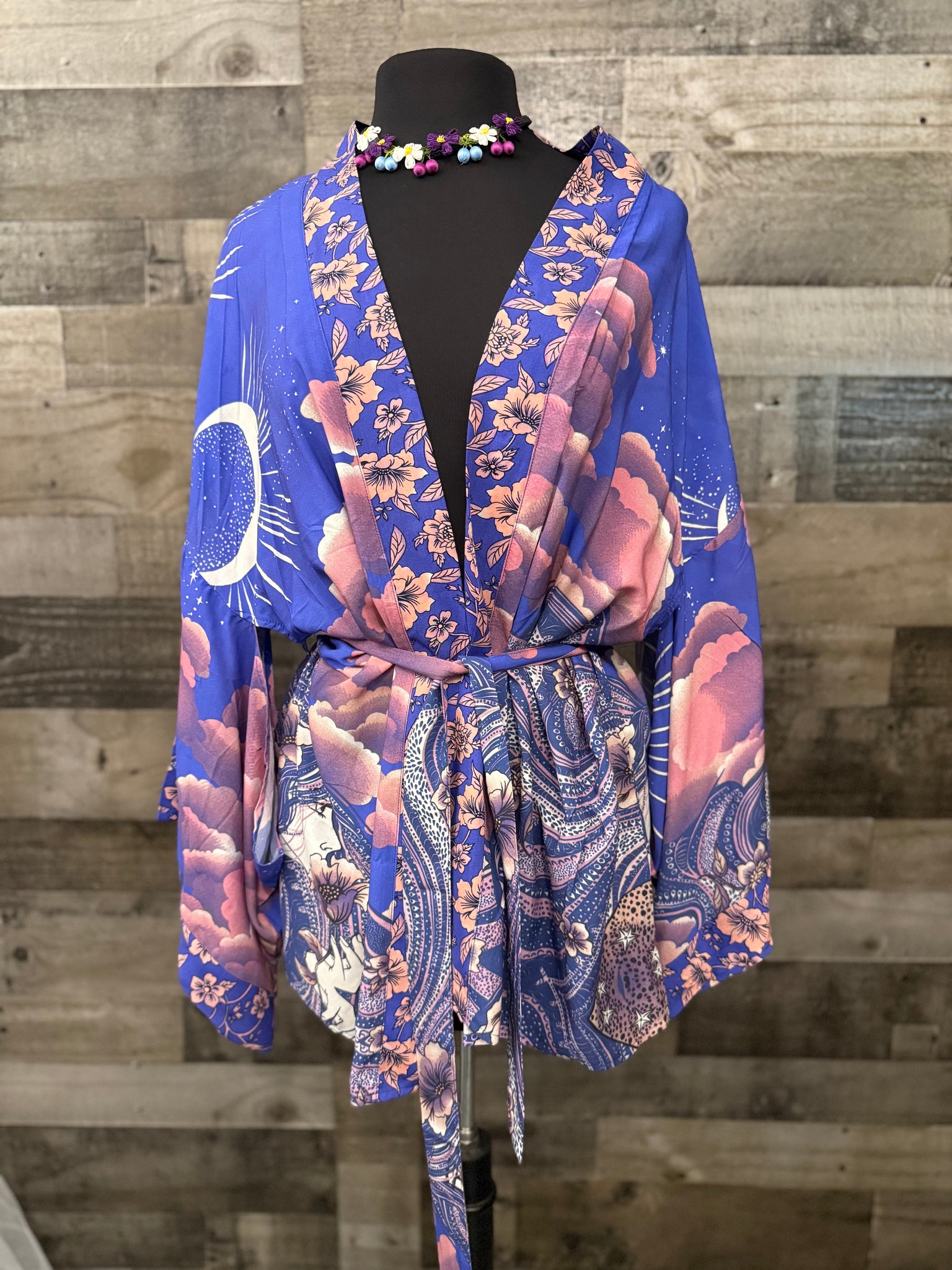 Beautiful Moon Kimono in Lavender. Small and Large size available. Fits true to size. Fabric is Viscose.