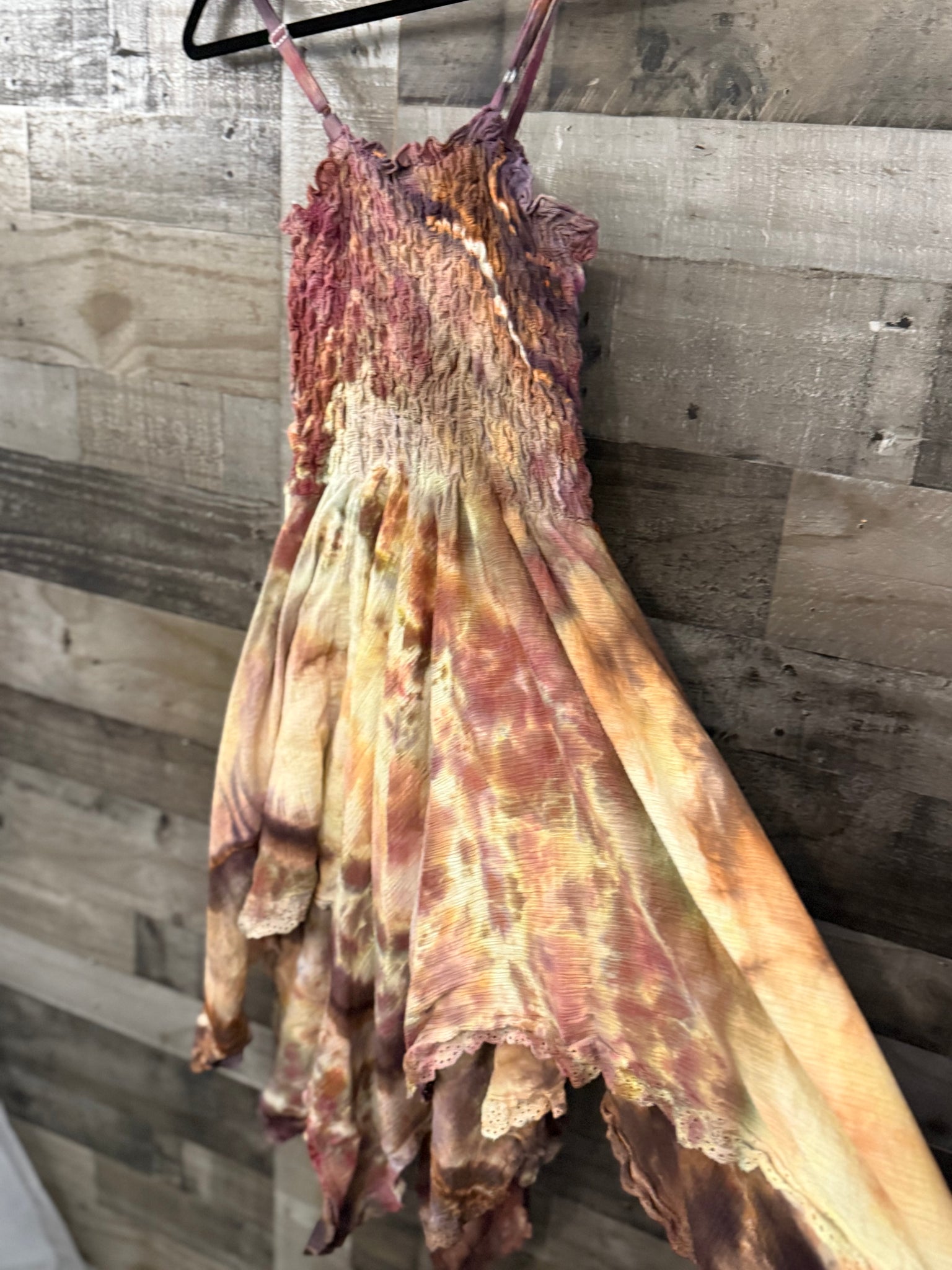 This little fairy dress is hand dyed and so cute! Fits a small to XL.