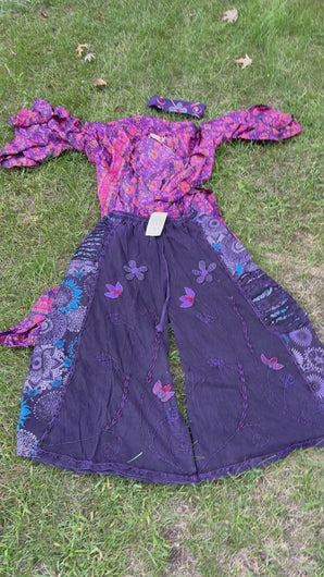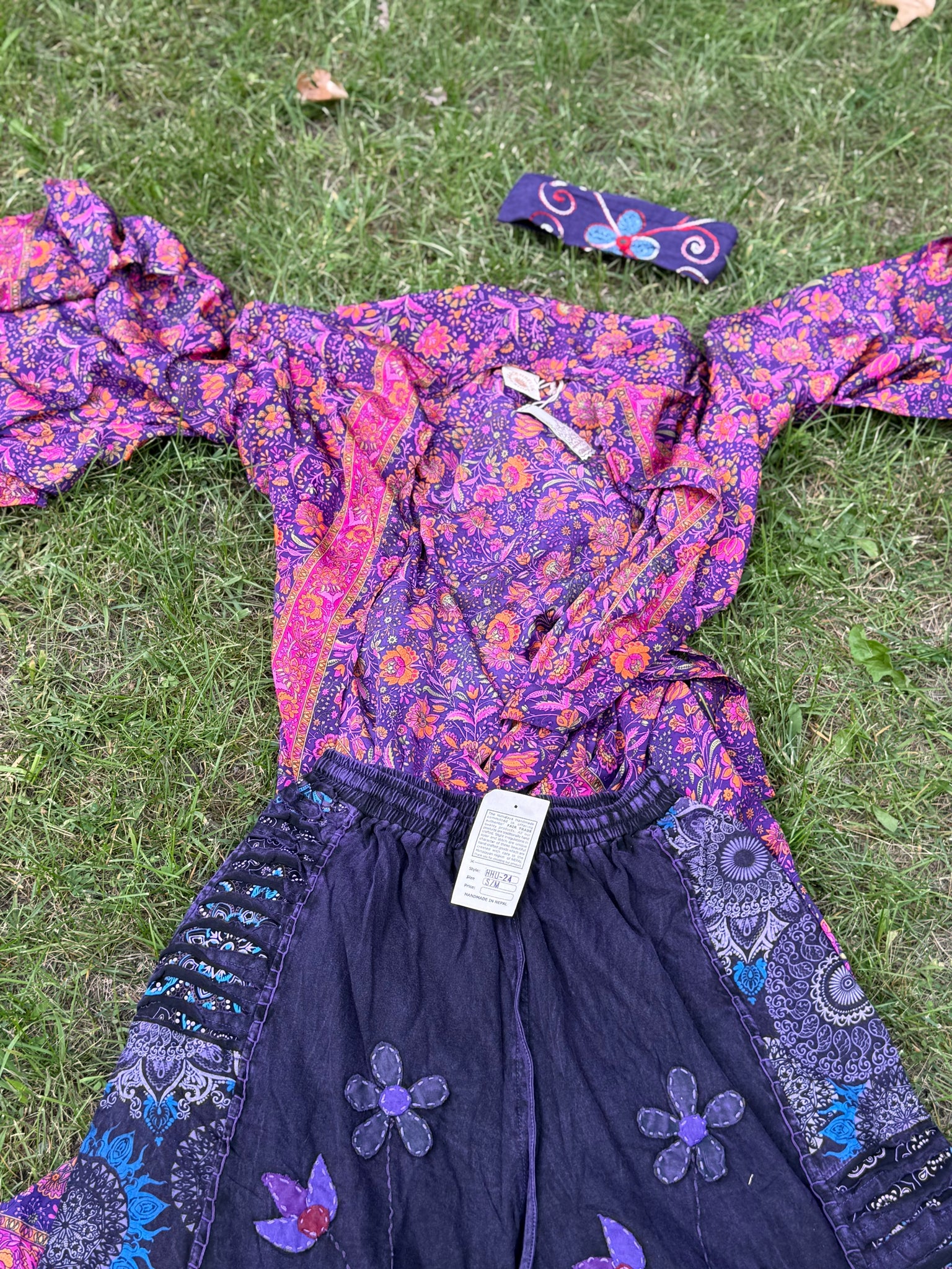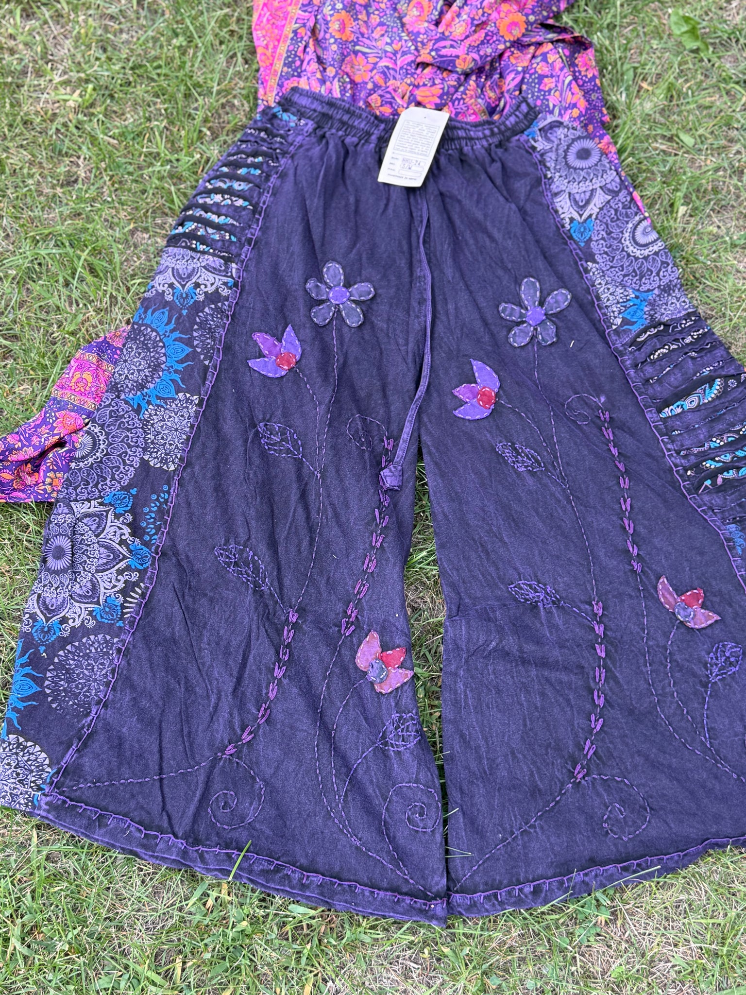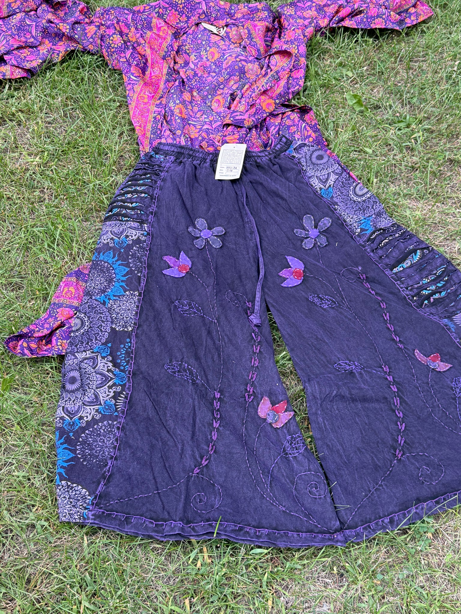 Pants are beautiful embroidered by hand in Nepal. I pairs them with a maxi kimono and embroidered headband.