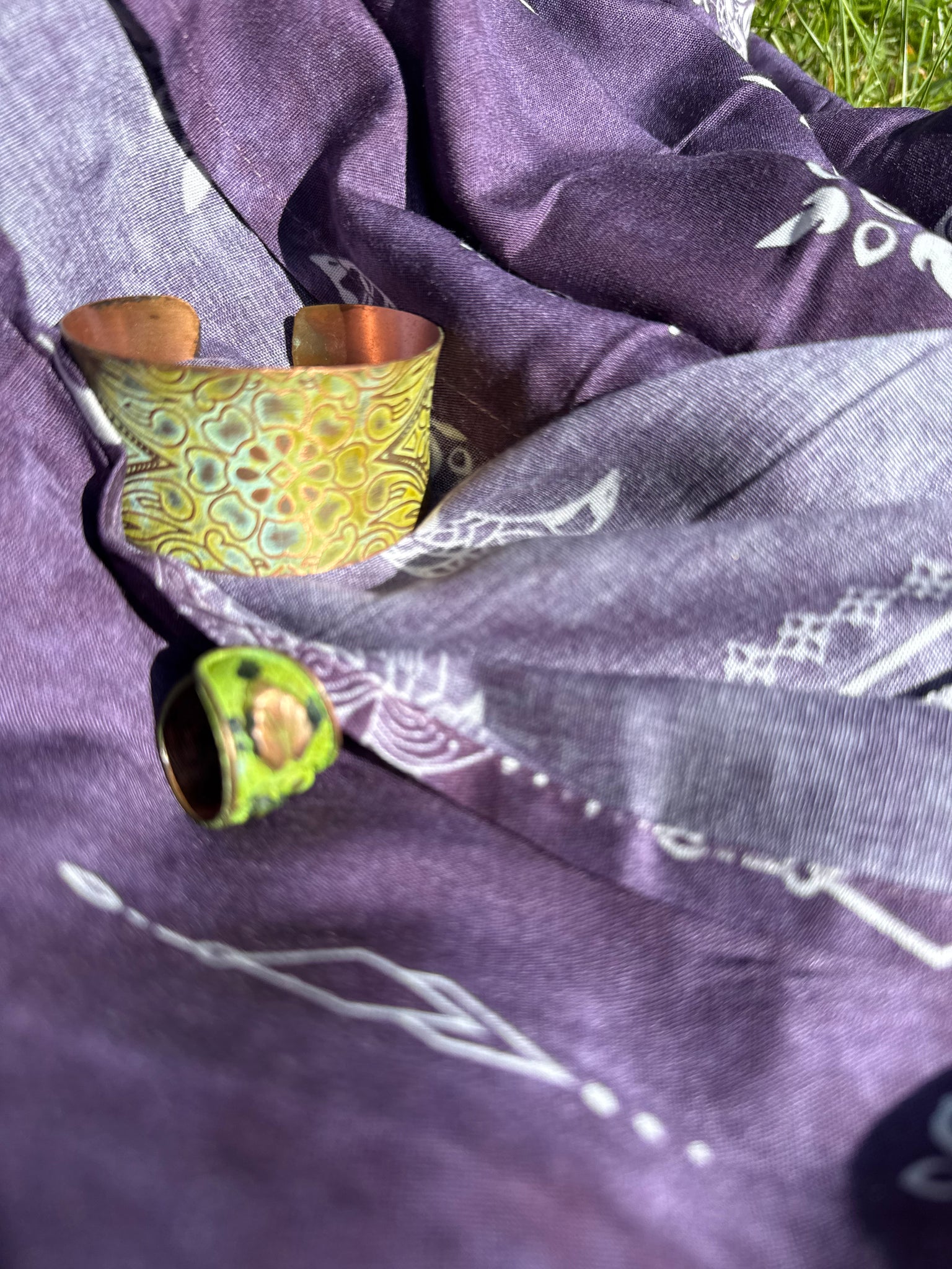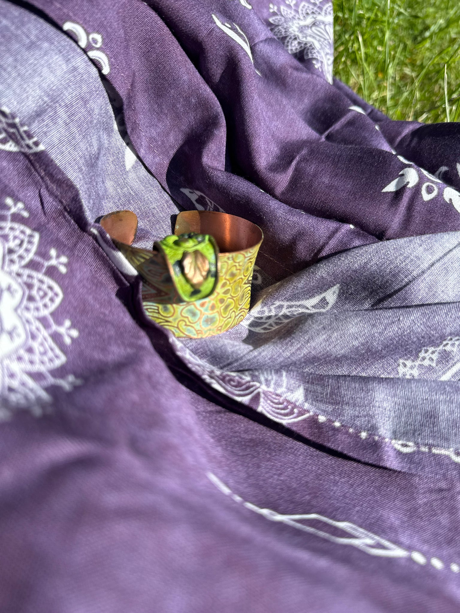 If I had to choose product of the whole month, it would be this one. I am in love with the style and fit and comfort of these pants. They are fun to wear alone with a T-shirt or dress it up with the kimono.  Just add a beautiful brass bracelet and copper ring to polish off the look.
