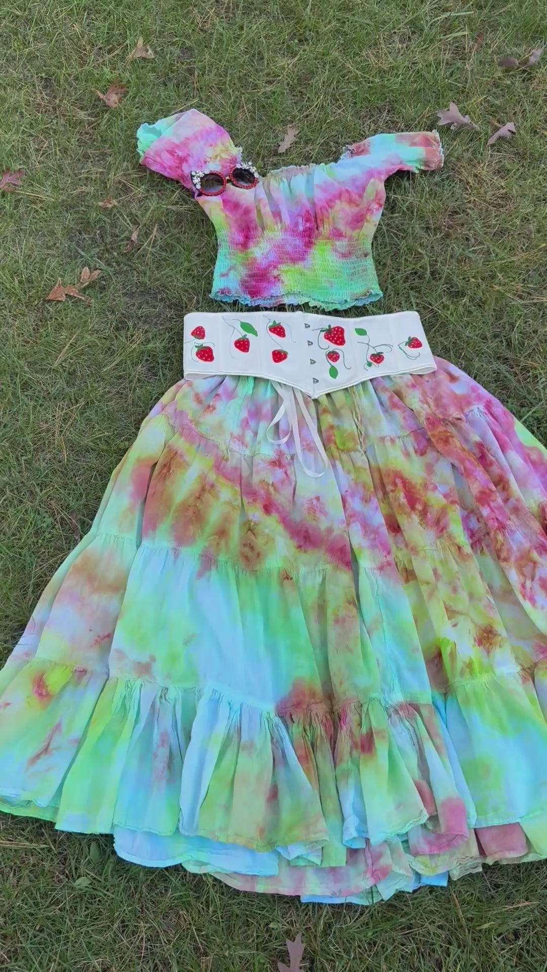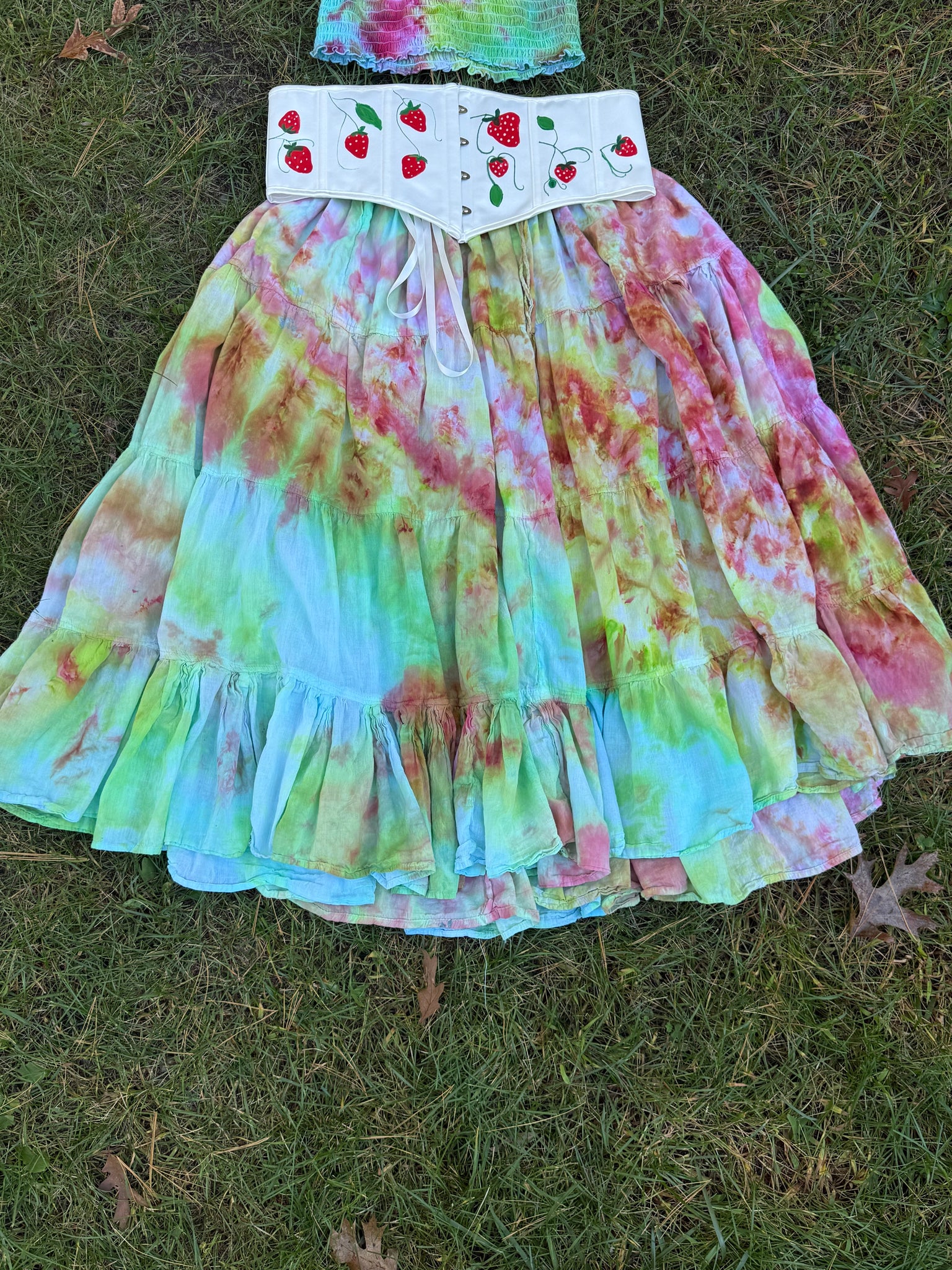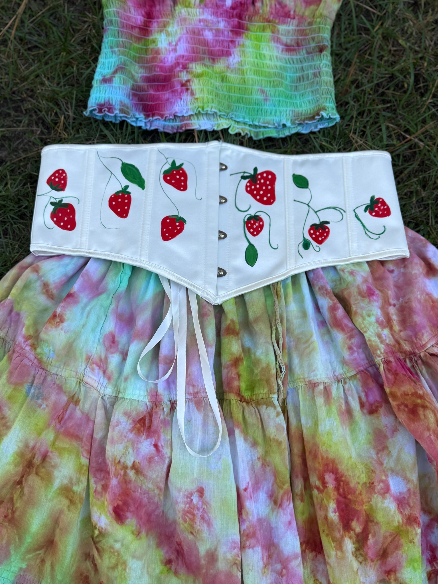 The top and skirt are both hand dyed in the shades of spring and strawberries.🍓